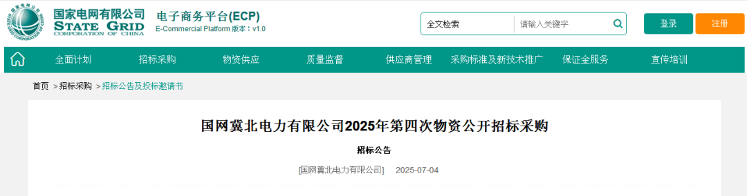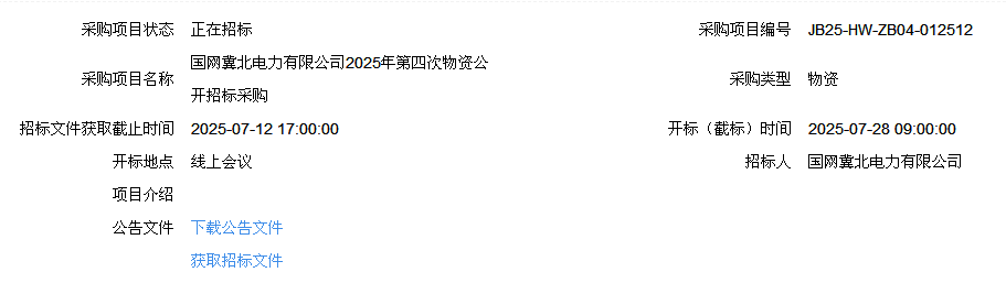 【招标】国网冀北电力2025年第四次物资公开招标采购招标公告